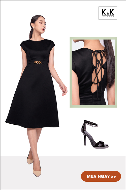 Đầm đen dáng xòe tay hến KK119-02; Giá: 510.000 VNĐ