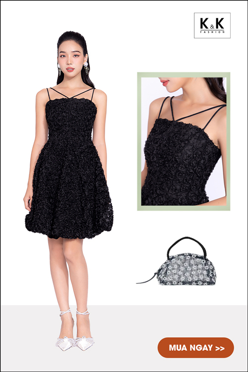Đầm đen dự tiệc dáng ôm phối hoa KK140-09; Giá: 490.000 VNĐ