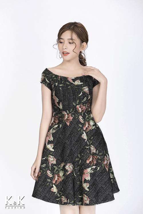 Đầm xòe hoa gấm HL06-23; Giá: 690.000 VND