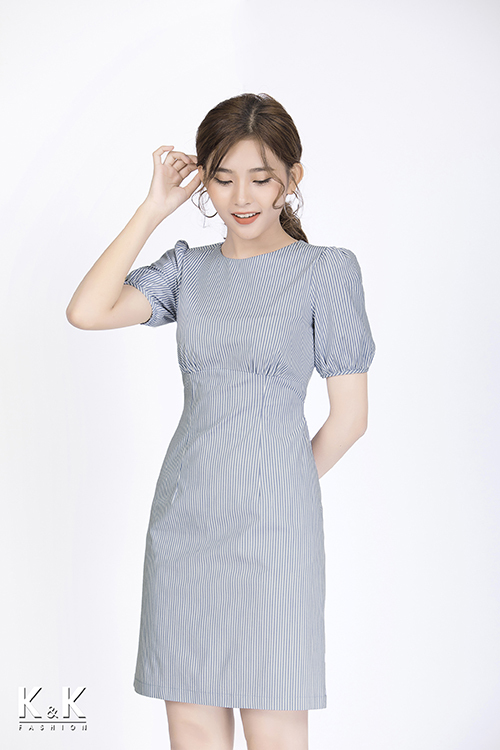 Đầm chữ A sọc trắng xanh KK82-26; Giá: 430.000 VND