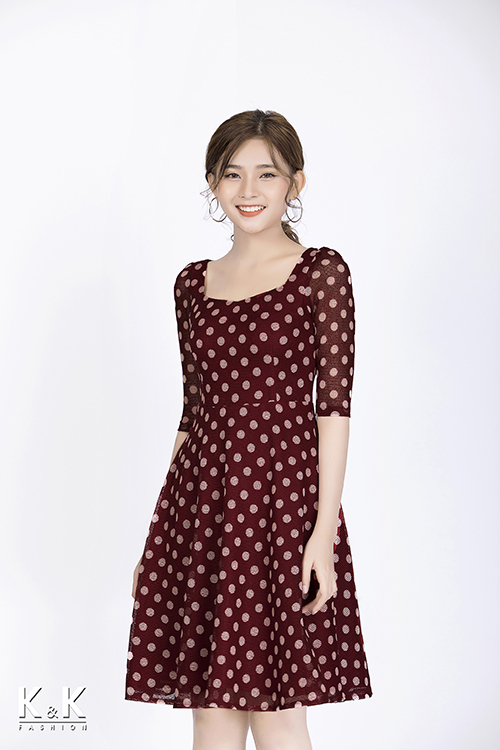 Đầm xòe đỏ chấm bi nổi bật KK82-37; Giá: 450.000 VND