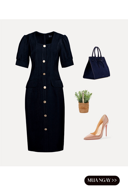 Đầm trung niên dáng ôm phối nút KK140-14; Giá: 530.000 VNĐ