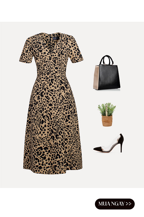 Đầm công sở dáng xòe chữ A họa tiết da beo KK120-28; Giá: 490.000 VNĐ